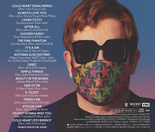 【収録内容】1. エルトン・ジョン&デュア・リパ / コールド・ハート(プナウ・リミックス)Elton John & Dua Lipa - Cold Heart (PNAU Remix)2. エルトン・ジョン、ヤング・サグ&ニッキー・ミナージュ / オールウェイズ・ラヴ・ユーElton John, Young Thug & Nicki Minaj - Always Love You3. サーフェシズ feat. エルトン・ジョン / ラーン・トゥ・フライSurfaces feat. Elton John - Learn To Fly4. エルトン・ジョン&チャーリー・プース / アフター・オールElton John & Charlie Puth - After All5. リナ・サワヤマ&エルトン・ジョン / チョーズン・ファミリーRina Sawayama & Elton John - Chosen Family6. ゴリラズ feat. エルトン・ジョン&6LACK / ザ・ピンク・ファントムGorillaz feat. Elton John & 6LACK - The Pink Phantom7. エルトン・ジョン&イヤーズ&イヤーズ / 哀しみの天使(グローバル・リーチ・ミックス)Elton John & Years & Years - It's a sin (global reach mix)8. マイリー・サイラス feat. ワット、エルトン・ジョン、ヨーヨー・マ、ロバート・トゥルヒーヨ&チャド・スミス / ナッシング・エルス・マターズMiley Cyrus feat. WATT, Elton John, Yo-Yo Ma, Robert Trujillo & Chad Smith - Nothing Else Matters9. エルトン・ジョン&SGルイス / オービットElton John & SG Lewis - Orbit10. エルトン・ジョン&ブランディ・カーライル / シンプル・シングスElton John & Brandi Carlile - Simple Things11. ジミー・アレン&エルトン・ジョン / ビューティー・イン・ザ・ボーンズJimmie Allen & Elton John - Beauty In The Bones12. リル・ナズ・X feat. エルトン・ジョン / ワン・オブ・ミーLil Nas X feat. Elton John - One Of Me13. エルトン・ジョン&エディ・ヴェダー / EチケットElton John & Eddie Vedder - E-Ticket14. エルトン・ジョン&スティーヴィー・ワンダー / フィニッシュ・ラインElton John & Stevie Wonder - Finish Line15. エルトン・ジョン&スティーヴィー・ニックス / ストールン・カーElton John & Stevie Nicks - Stolen Car16. グレン・キャンベル&エルトン・ジョン / アイム・ノット・ゴナ・ミス・ユーGlen Campbell & Elton John - I'm Not Gonna Miss You+日本盤のみボーナス・トラック1曲収録