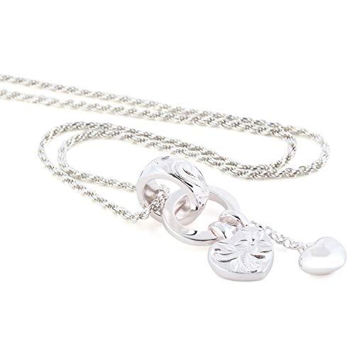 ■商品情報:ダブルハートの一つにもプルメリアと波が彫られています、もうひとつのぷくっとしたハートもかわいいですね!バチカン部分が大きいので重宝します。ハワインジュエリーネックレスの中でもギミックが効いていてユニークなデザインで可愛いです。