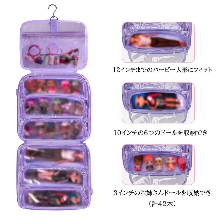 【ドール収納サイズ】内側には6つのジッパーポケットと人形アクセサリー用のポケットがあり、それぞれポケットには12インチのバービーまたは10インチのLOL Surprise OMGまたは3インチのお姉さんドールを収納できます。 【だわり設計】LOL OMG収納バッグにはフックが付いているので、壁、ドア、または人形を飾りたい場所ならどこにでも掛けることができます。 【持ち運び便利】パッド入りのハンドルとショルダーストラップ (長さ: 60-117cm) で、人形や小さな人形のアクセサリーをどこにでも持ち運べます。 【高品質な素材】LOL OMG ドール収納バッグの外側はPUレザー、内側は透明なPVC素材でできており、防水性、耐久性があり、お手入れも簡単です。 【寸法】寸法: 30CM×9CM×27.5CM、展開サイズ: 73.7CM×27.9CM。この人形収納バッグの光沢のある外観は、子供の日、クリスマス、誕生日、その他の記念日の贈り物に最適です。