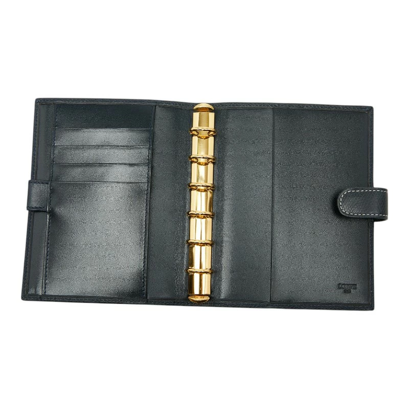 ロエベ アナグラム アジェンダ 手帳カバー システム手帳 ネイビー レザー レディース LOEWE 【中古】