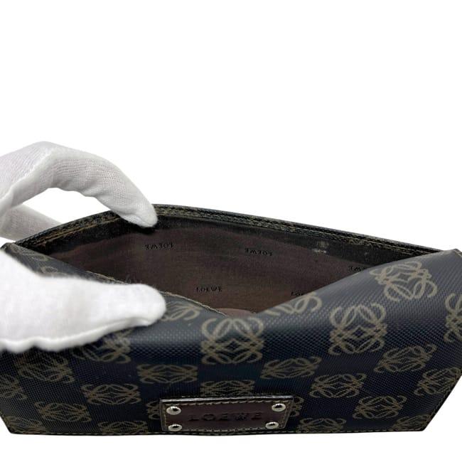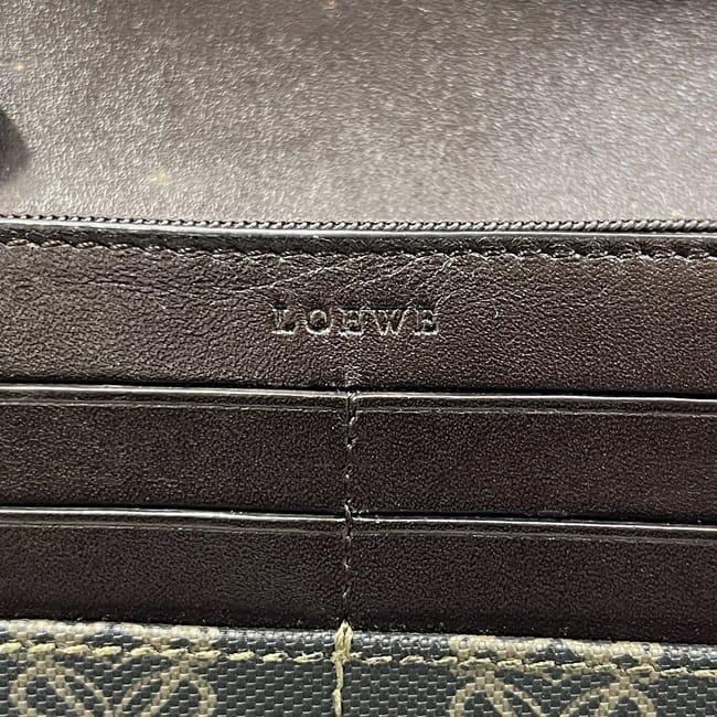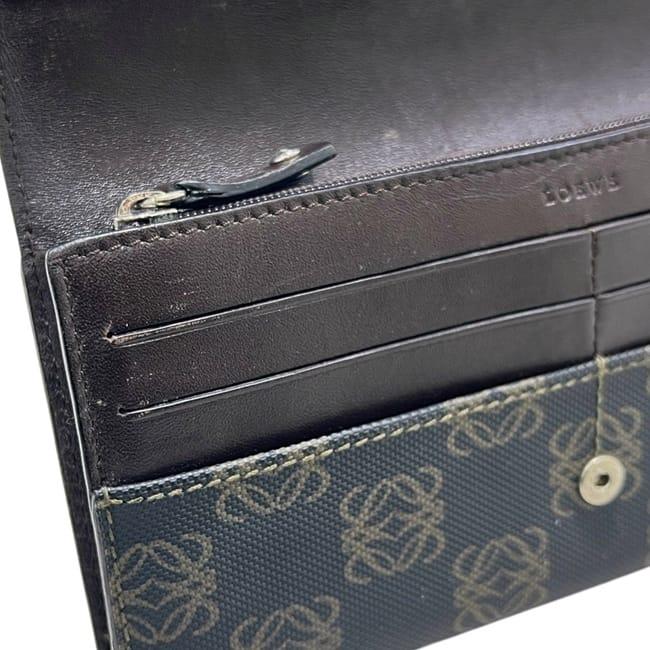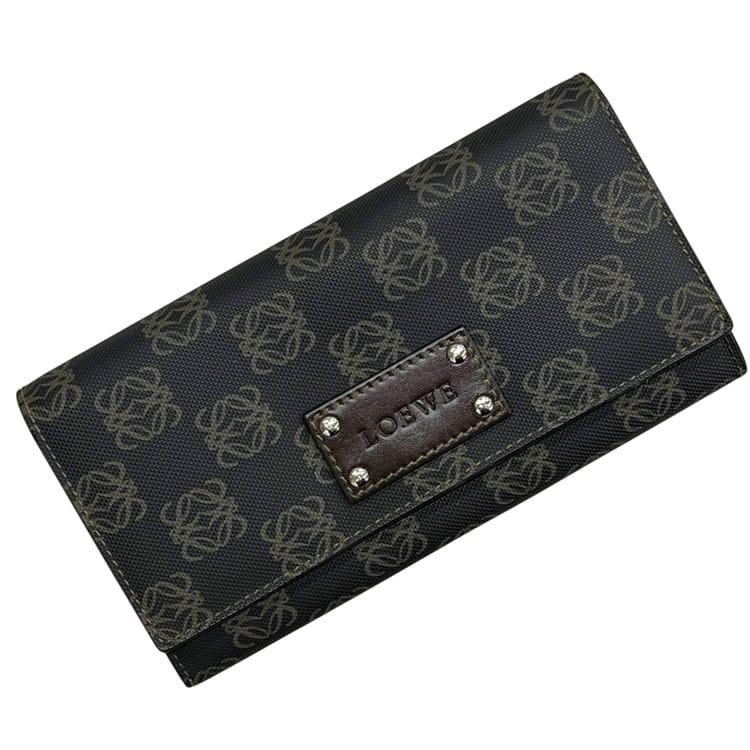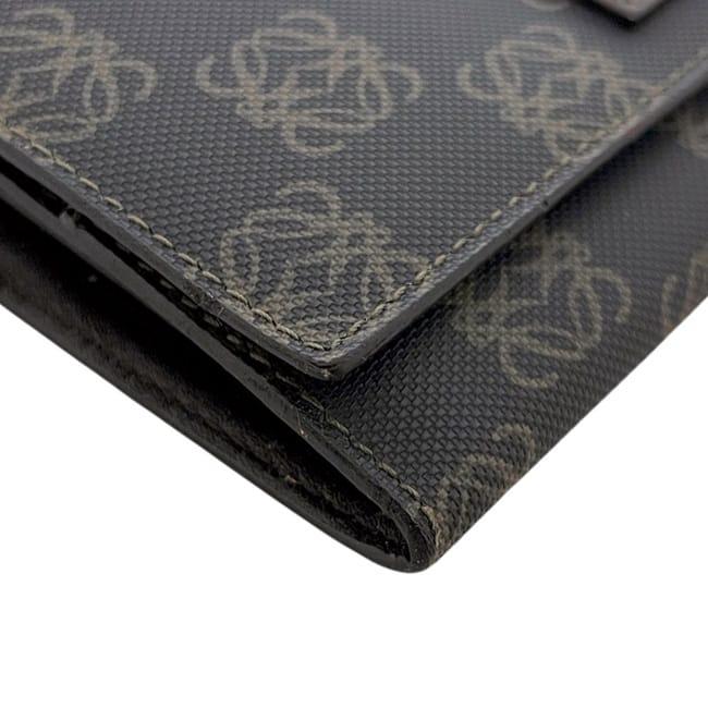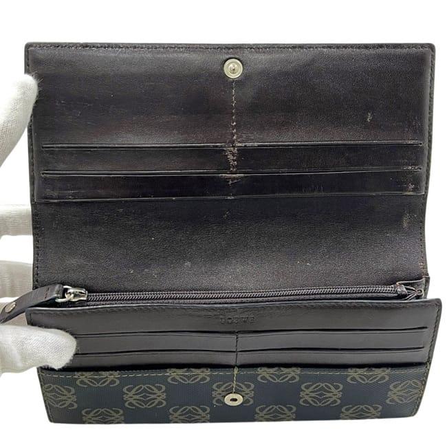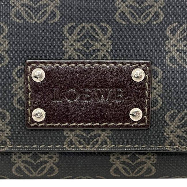 Loewe bi-fold long wallet, dark gray, Anagram pattern, 168 80 966, excellent condition, PVC leather, pre-owned, LOEWE logo, all-over print, snap closure, long wallet, with coin purse, vintage, unisex, classic, popular, simple.