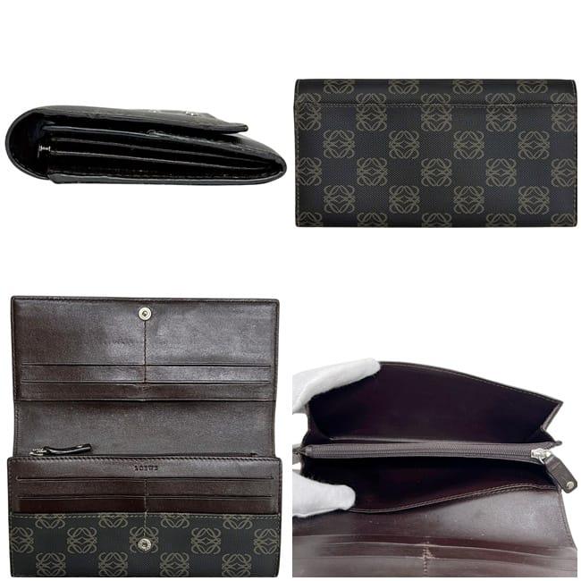 ☆---- 商品について ----☆ロエベ 二つ折り 長財布 ec-25270 ダークグレー アナグラム 168 80 966 美品 財布 PVC レザー 中古 LOEWE ロゴ 総柄 ホック ロング ウォレット 小銭入れ有 ヴィンテージ レディース メンズ男女兼用 定番 人気 シンプル コーティングレザー ブランド 本物 鑑定済
