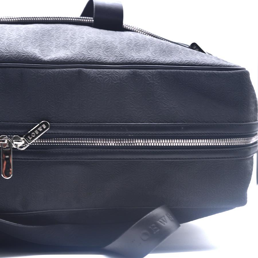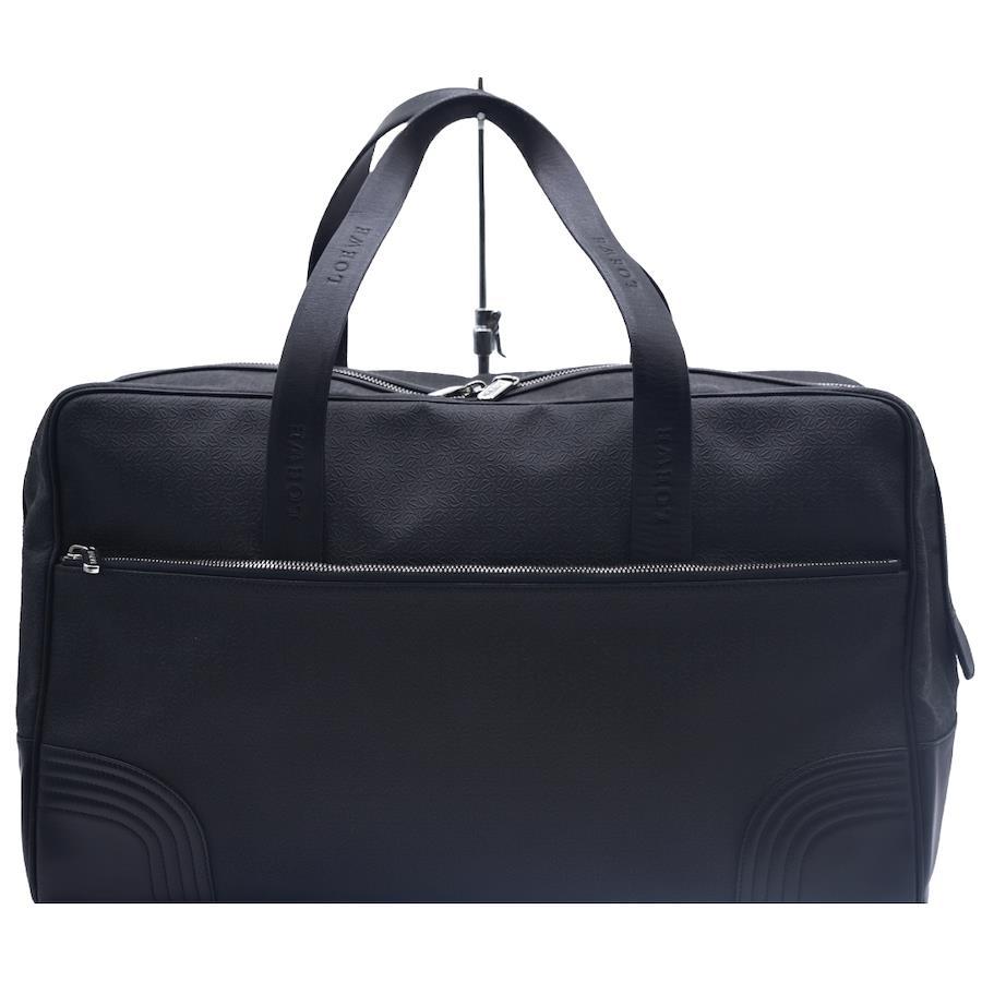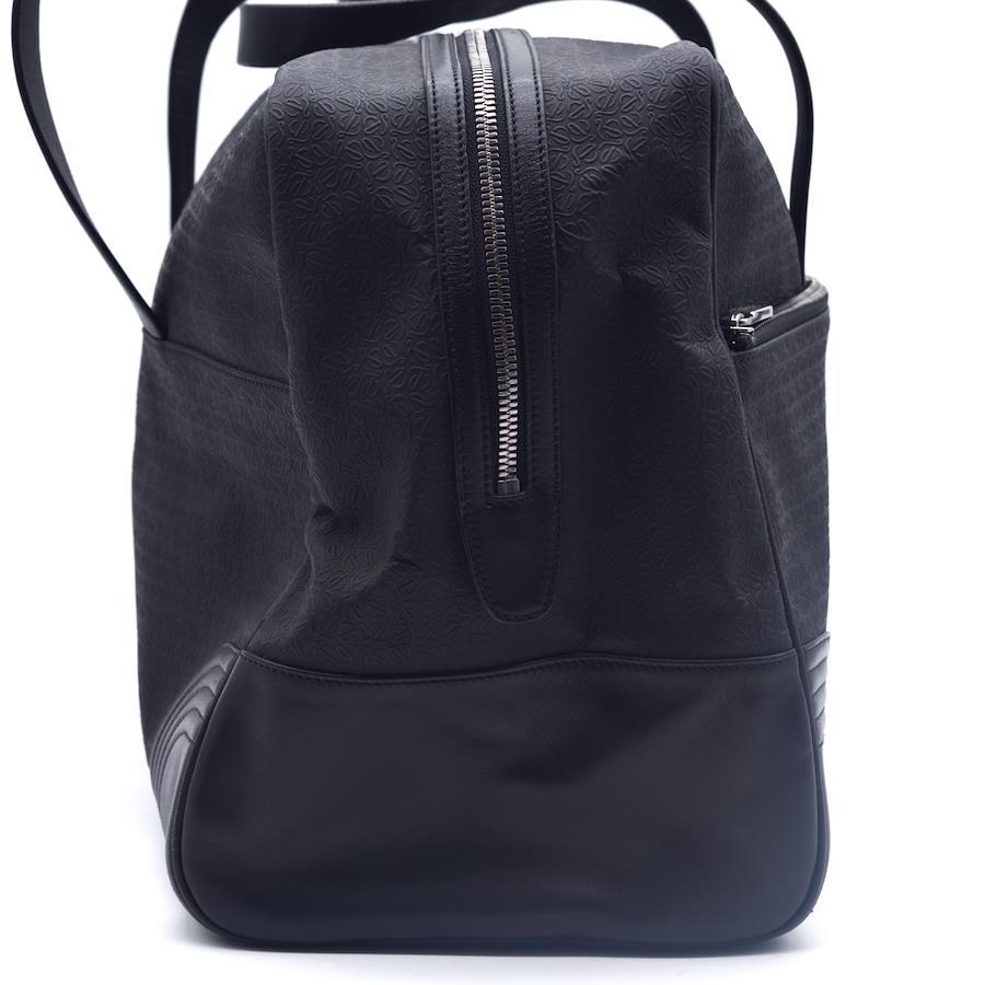 LOEWE Boston Bag in Black with Repeat Anagram Pattern in Black PVC Leather. Men's Designer Bags, Designer Bags, Boston Bags, Travel Bags, Duffel Bags, and Large Bags.