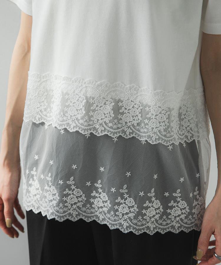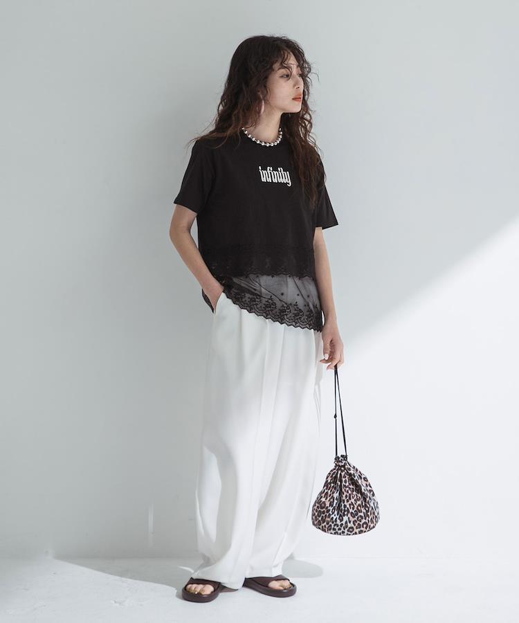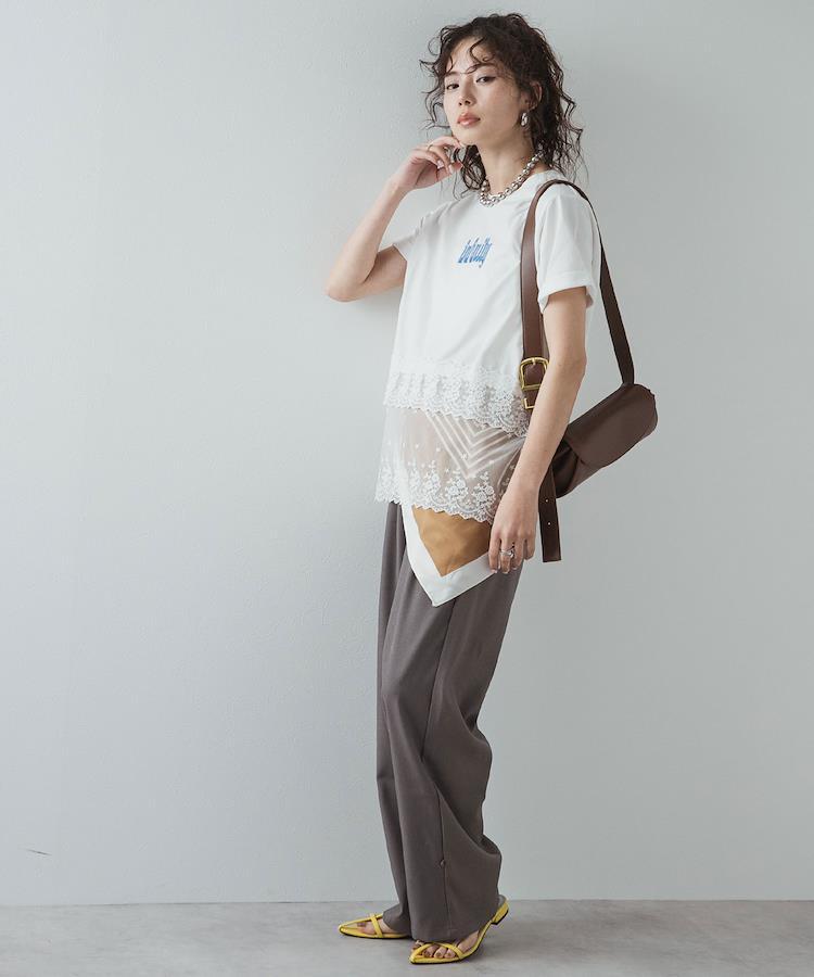 またフェミニンなレースにカジュアルな刺繍ロゴとのバランスが憎い1枚。