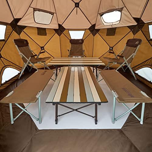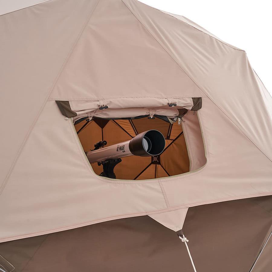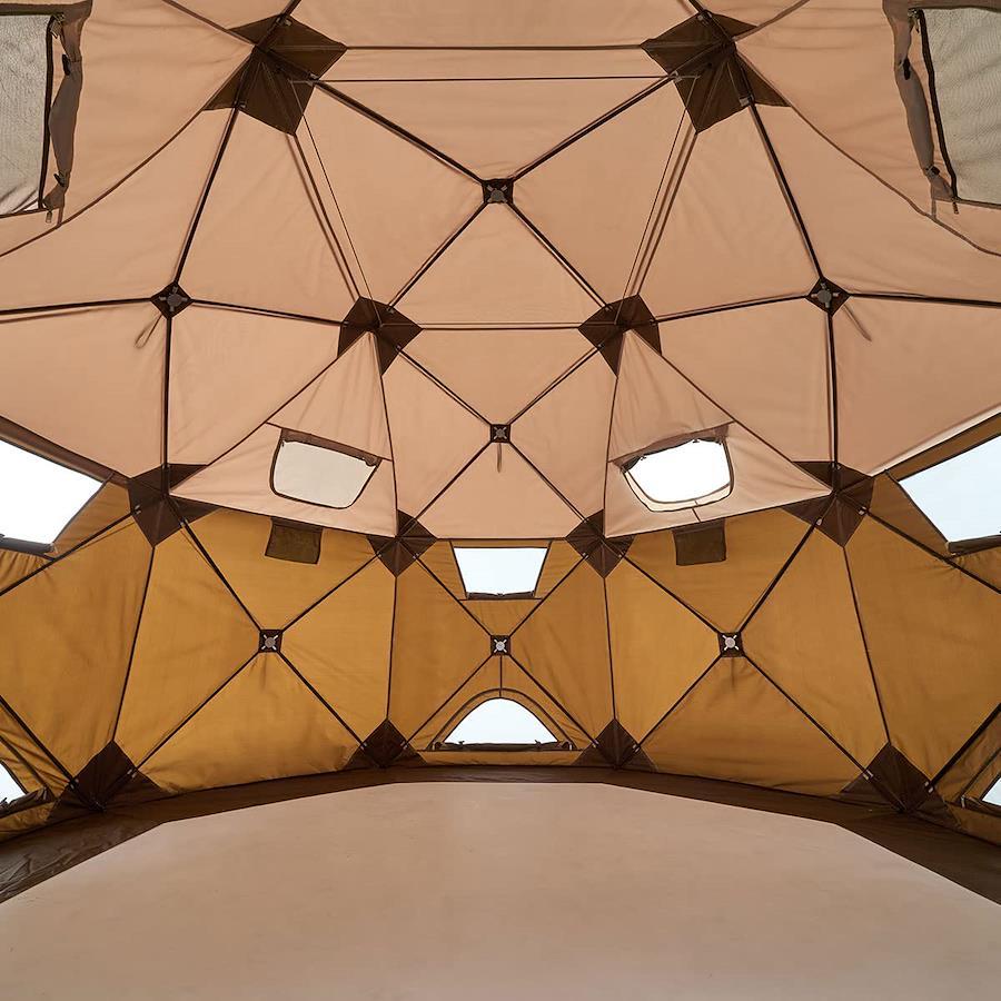 ● 12個のパネルで構成された8角形の大型テント。全方位に10個の窓が配置。
