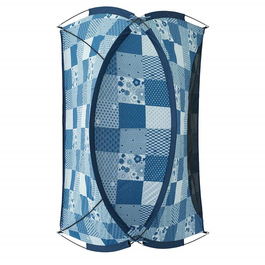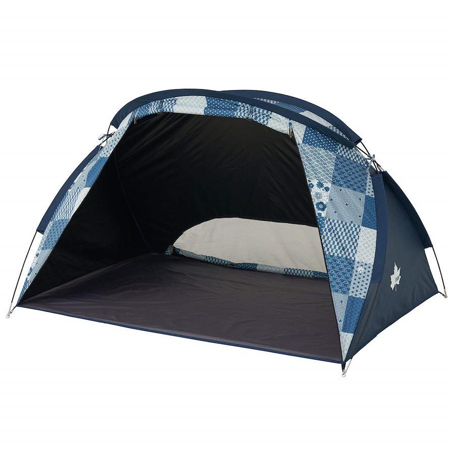 総重量:(約)1.7kgサイズ:(約)幅180×奥行125×高さ110cm、収納サイズ:(約)幅57×奥行11×高さ11cm主素材:[フレーム]グラスファイバー [フライシート]ポリタフタ(裏面:ソーラーブロックコーティング、耐水圧450mm、UV-CUT加工) [フロアシート]ポリタフタ [メッシュ]ポリエステルソーラーブロック生地採用ロゴスオリジナル和柄デザイン。フルクローズタイプ。