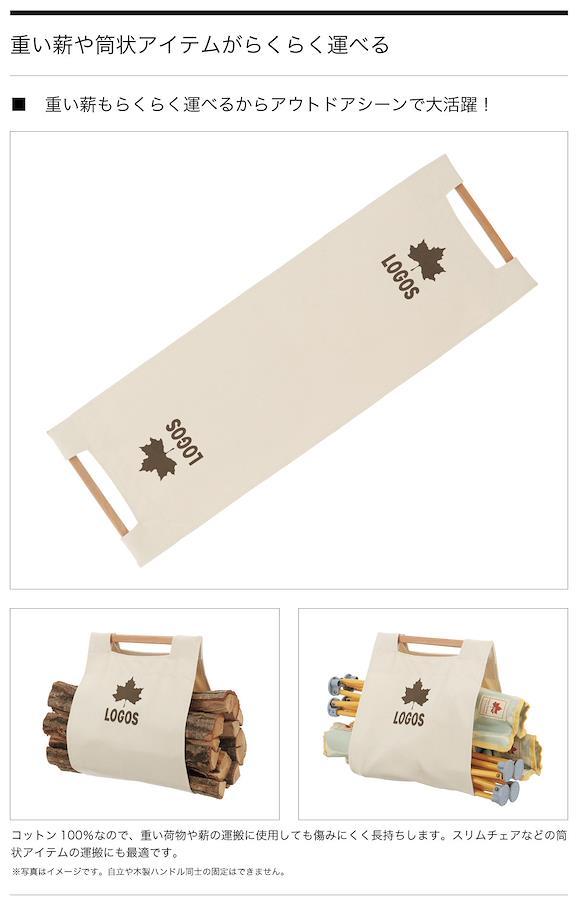 総重量:(約)240gサイズ:(約)89×29.5cm主素材:コットン、木材重い薪が楽々運べる。スリムチェア等の筒状アイテムの運搬にも最適。