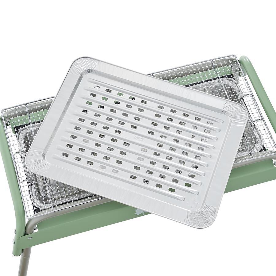 総重量:(約)70g、2枚入り、サイズ:(約)縦34.5×横45.5cm構成:炭焼きプレート×2、主素材:アルミニウム箔性能/特長: ・手入れが要らない簡単使い切り焼網プレート ・焼網の上において使用するだけ。 ・焼網のこびりつき汚れの洗浄からあなたを解放してくれます ・炭火焼の美味しさはそのまま楽しめます ・プレートの両サイドを折り曲げることで、コンロからズレにくくできます ・ハサミで好きな大きさに切れば、小型コンロにも使用できます。 ・LOGOSピラミッドたき火のゴトクにセットすれば、BBQも楽しむことが出来ます。 ・2枚セットで、BBQ2回分 ・可燃物として処理することができますBBQグリルの焼網にセットすれば、いままで面倒だった焼網のこびりつき汚れの処理は、 プレートごとまとめて処理するだけの簡単に。 【使い方】1)グリルの焼網にセット 2)BBQ後、焼網の汚れは、まとめるだけ!