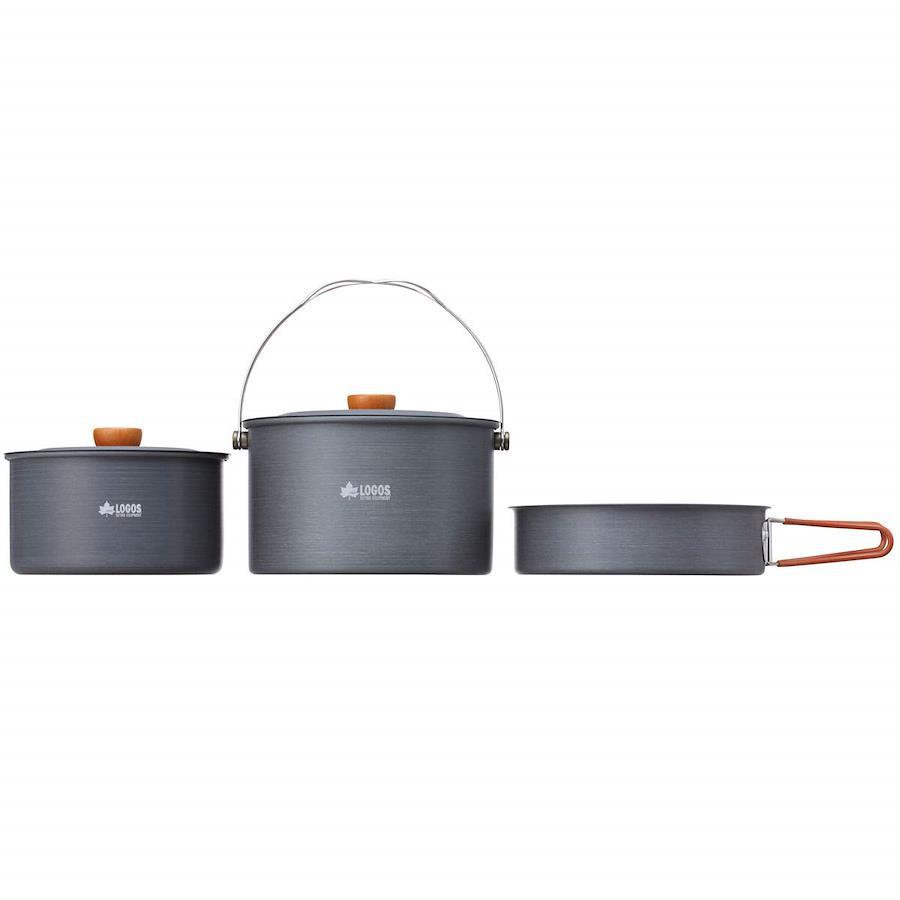 総重量:(約)1.2kg容 量:[大 鍋](約)3.2L [小 鍋](約)1.8L内寸:[大鍋](約)19.5cm[小鍋](約)17cm、収納サイズ:(約)幅22.5×奥行21×高さ14.8cm、主素材:アルミ、ステンレス、木材大鍋は吊鍋仕様。メッシュ収納袋付き。ハードアルマイト加工済。部門名:ユニセックス大人