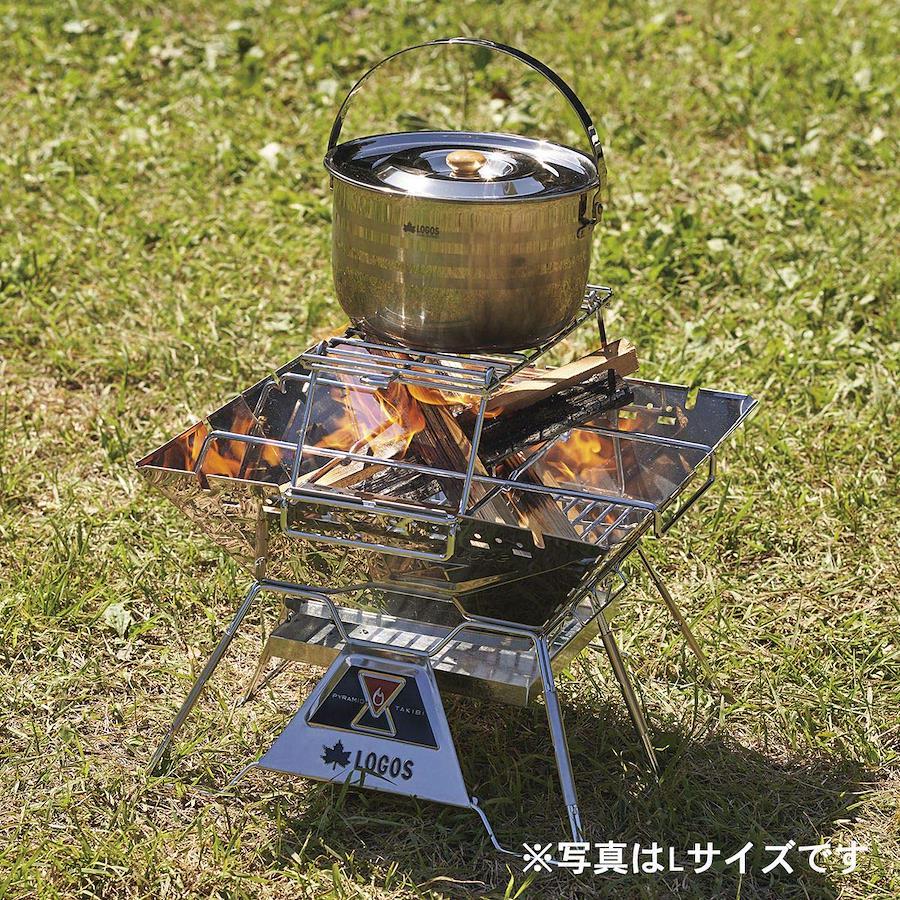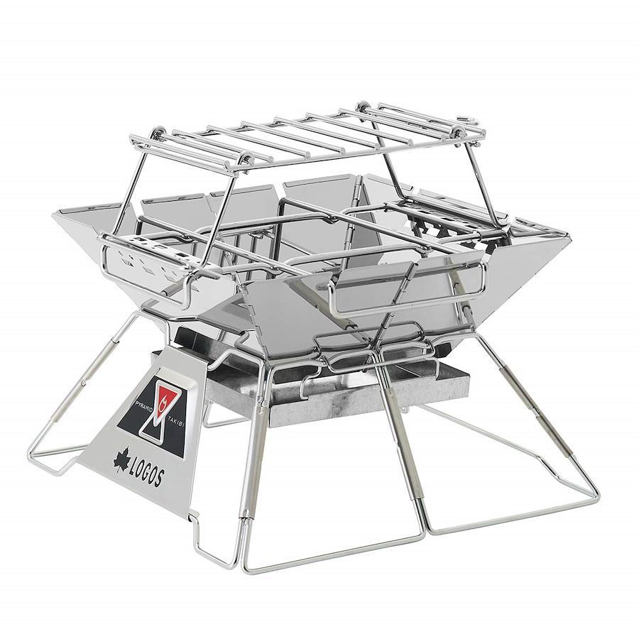 総重量:(約)535g サイズ:(約)幅31.5×奥行15.5×高さ9cm ラック部:(約)幅24.3×奥行15.5cm 収納サイズ:(約)幅29×奥行15.5×高さ3cm 耐荷重:(約)5kg 主素材:ステンレス ●折り畳み式の耐熱ラック。●ピラミッドTAKIBIにセットすればケトルや小鍋でたき火調理ができます。