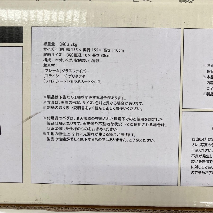 ※箱痛み有■商品説明ブランド:LOGOSアイテム名:SNOOPY SOLAR-BLOCK Q-TOP FULL SHADE総重量:(約)2.2kgサイズ:(約)幅155×奥行155×高さ110cm収納サイズ:(約)直径10×長さ80cm構成:本体、ペグ、収納袋、小物袋主素材:[フレーム]グラスファイバー[フライシート]ポリタフタ[フロアシート]PEラミネートクロス性能/特長:[フライシート]UV-CUT加工、PU加工、ソーラーブロック加工(UV-CUT率99.9%以上、遮光率100%)■付属品本体のみ■その他必ず、商品注文される前に店舗情報に記載している注意事項をご確認ください。