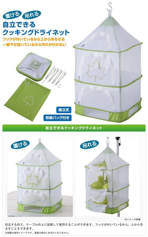 総重量:(約)400gサイズ:(約)36×36×60cm 収納サイズ:(約)37×37×1.5cm空間高:[1段目](約)14.5cm[2段目](約)20.5cm[3段目](約)20cm主素材:[生地、メッシュ]ポリエステル[フレーム]グラスファイバー自立できるクッキングドライネットドライネットといえば吊るのが当たり前、でも吊る場所に困りませんか?自立できるから、テーブルの上にもポンと置ける、使って分かる便利ポイントです。