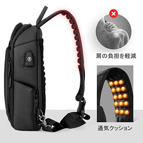 【多機能大容量収納】スマホ、鍵、財布、本、折りたたみ傘、iPad、ペットボトル、雑誌などの荷物が収納できるため、アウトドアや通勤に使用するのにぴったり!厳選された高密度ポリエステル、厚みのある触り心地、シワにならない、防水や耐摩耗性が優れている。丈夫な金具、サビや壊れるの心配はなし!【180°開口デザイン】シンプルなデザイン、ビジネスにも遊びにも活躍できるバッグ!ショルダーバッグのベルトは左利き、右利き用のどちらにも調整可能。自分の利き肩の方へ付け替えれます。【弾性クッション機能】背部はメッシュ弾性設計を採用し、背中にフィットし通気性・放熱性に優れ、蒸れを防ぎ暑い日でも快適にご使用していただけます。背部の圧迫を軽減でき、肩の疲れが軽減されます。【外付けUSB充電ポート付き】USBケーブル線を贈る、バッグ側面にはUSB充電ポートが付属していますので、モバイルバッテリーをご用意頂ければ接続可能です。ここに充電ケーブルを挿して、バックの中にモバイルバッテリーを挿すことで、バックからモバイルバッテリーを出さなくてもスマホが充電できます、ハンズフリーでスマホやタブレットをスマートに充電しながら使用可能。【サイズ】34cm?20cm?10cm【重量】540 g【素材】高密度ポリエステル、メタル【色】ブラック