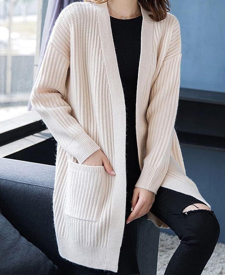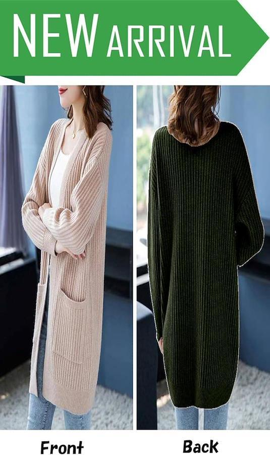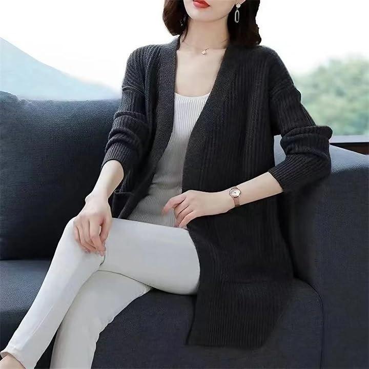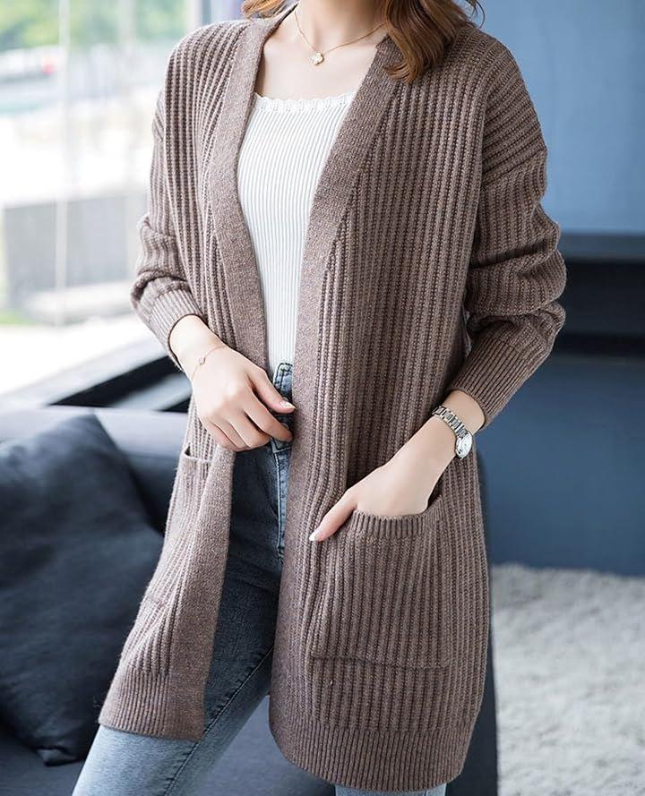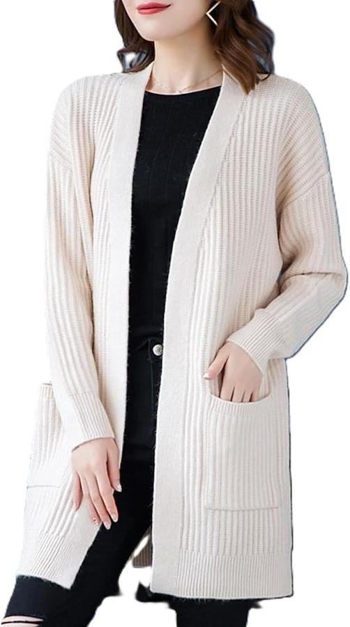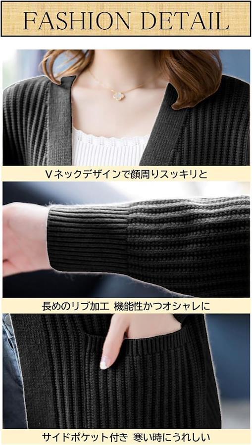 リブ編みのストレッチ素材で、寒い季節に大活躍する着心地抜群のカーディガン、ポケット付きも嬉しいポイントです。