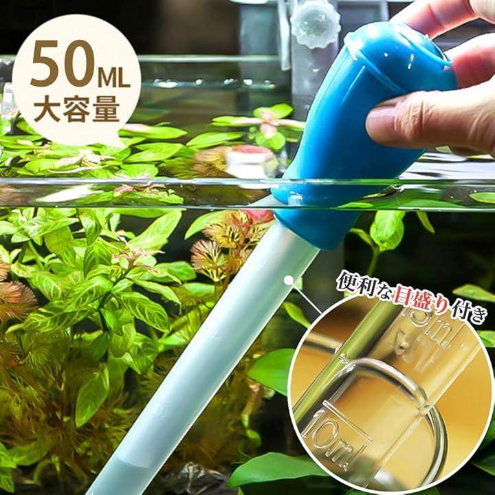「大容量50mlのロングタイプ」目盛り付きですので、アクアリウムの水質調整剤の計量や、液体飼料を与えるときにも使用できます。