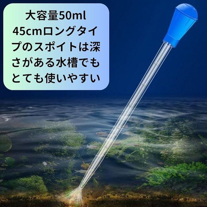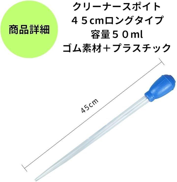 長さ45cmのロングタイプのスポイトは深い水槽でも手を濡らさずに作業ができます。