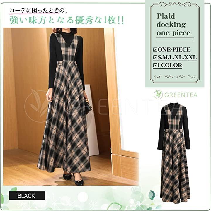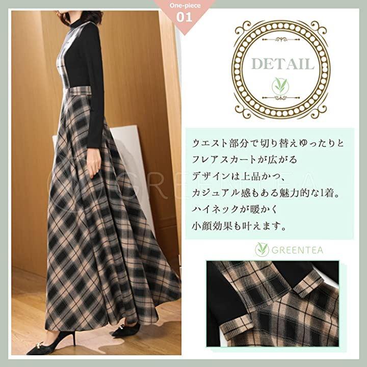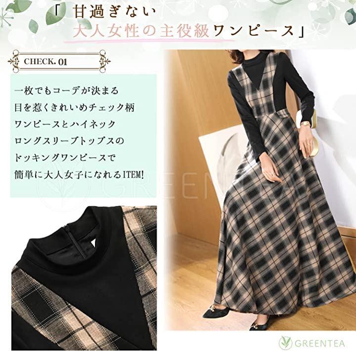 目を惹くきれいめチェック柄ワンピースとハイネックロングスリーブトップスのドッキングワンピースのです*