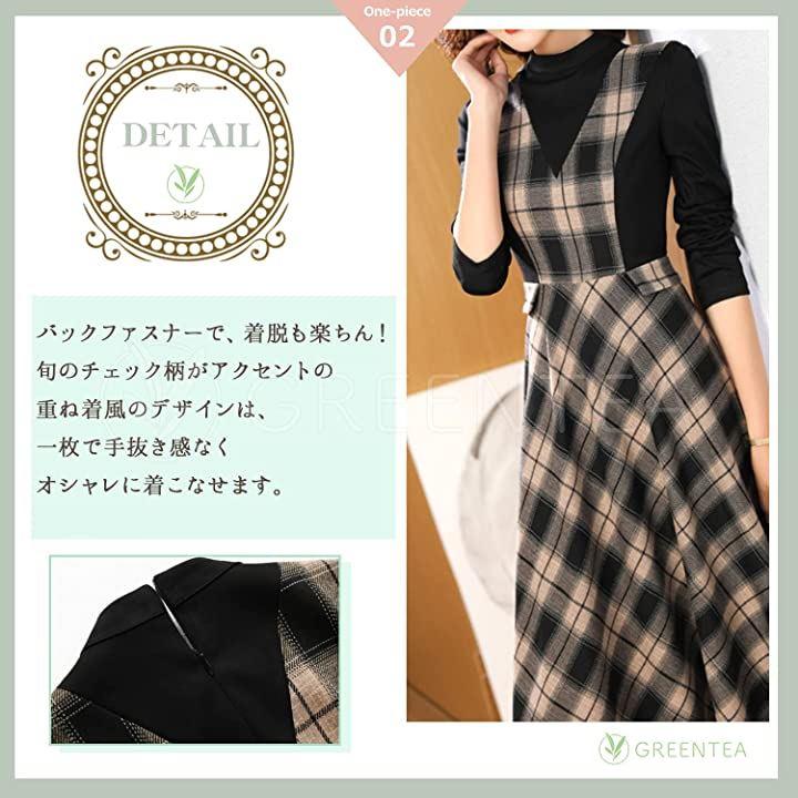 ・バックファスナーで、着脱も楽ちん。 旬のチェック柄がアクセントの重ね着風のデザインは、一枚で手抜き感なくオシャレに着こなせます。