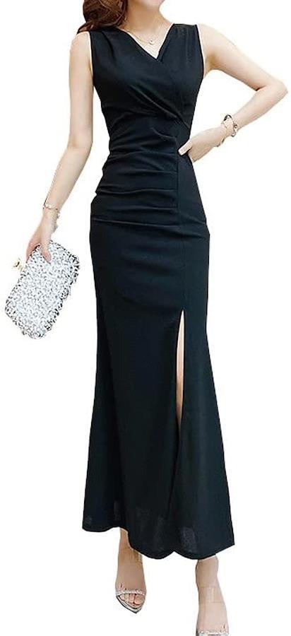 ・贅沢で上品なロング丈と、大胆にあしらった深めのスリットがセクシーなマーメイドワンピースです。