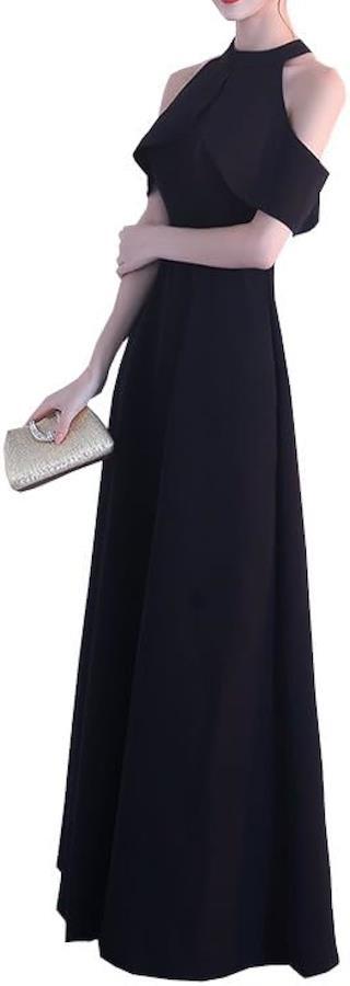 Long dress, flared, A-line, high-waisted, maxi length, off-the-shoulder, simple, party dress for women