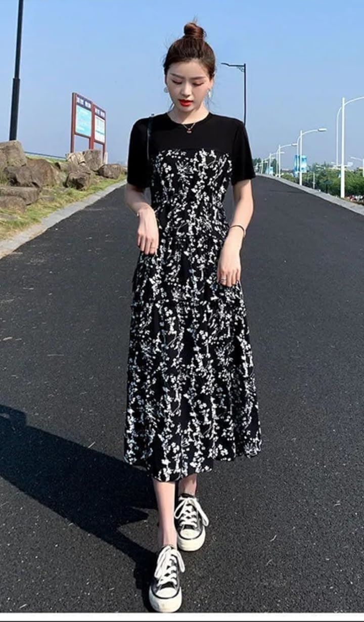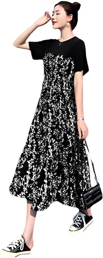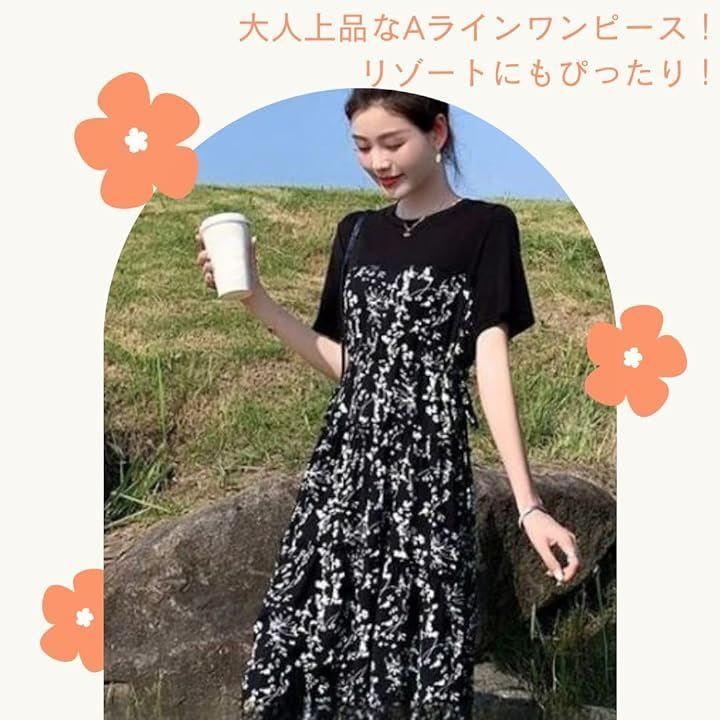 ・大人上品なAラインワンピース。リゾートにもぴったり。 レイヤード風デザインで、いつもと違うワンランク上の着こなし Tシャツスタイルの上着と花柄のワンピースが合わさった、レイヤード風デザインのワンピース。