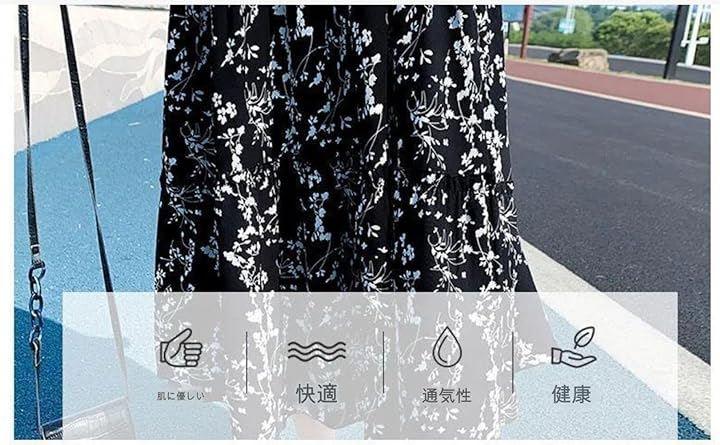 ・ブラックベースにボタニカル柄で、大人可愛い印象。 シックなブラックベースに、爽やかなボタニカル柄が映えるロングワンピース。