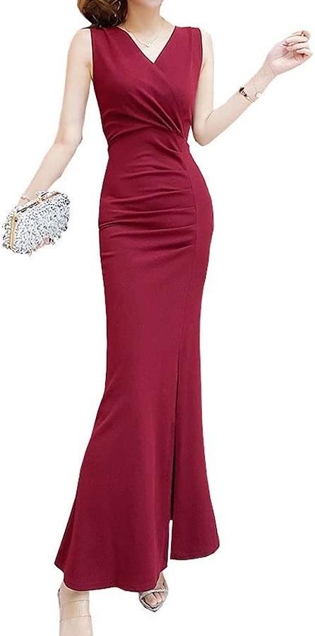 ・贅沢で上品なロング丈と、大胆にあしらった深めのスリットがセクシーなマーメイドワンピースです。