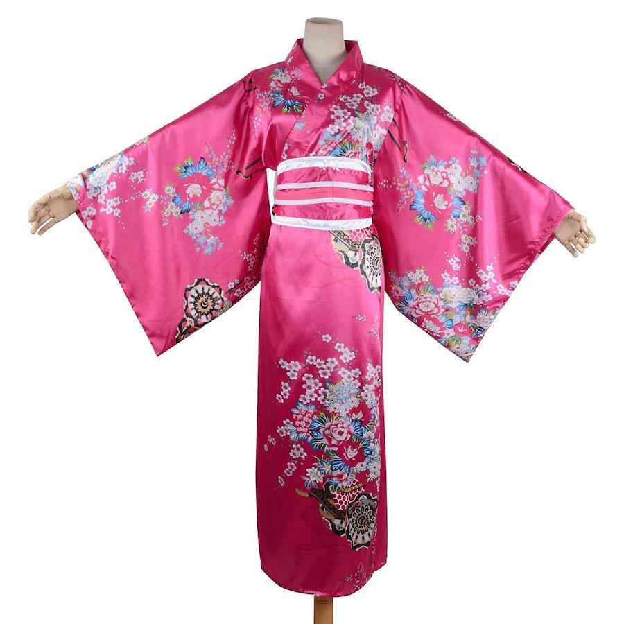 【サイズ】着丈(肩から)135cm、身幅 54cm、袖丈 50cm【セット内容】着物、帯、リボン【商品特?】大人気の花魁ロング着物ドレス!光沢の美しいサテン地に咲き誇る花プリントが目を引きます。前開きタイプなので着脱が簡単。帯は調節ができます。リボンは取り外し可能で好きな位置に付けられます。軽いし、動きやすい!よさこい衣装や舞踊衣装に最適!夏の浴衣、秋のハロウィンと年間を通して大活躍間違いなし!パーティー / ステージ / 演劇 / 演奏 / 芸人さん 衣装 / 発表会 / 二次会 / 結婚式 / 夏祭り / 新年 などなど幅広いジャンルでご活用いただいています。【洗濯表示】洗濯不可、塩素系漂白剤による漂白不可、アイロンは中温で当て布使用、ドライクリーニング不可。洗濯はお避け下さい。汚れは水で薄めた中性洗剤でタオル等を使って拭き取って下さい。【注意】画面上と実物では多少色具合や柄の位置が異なる場合もございますので予めご了承ください。登録情報素材構成 100% ポリエステル