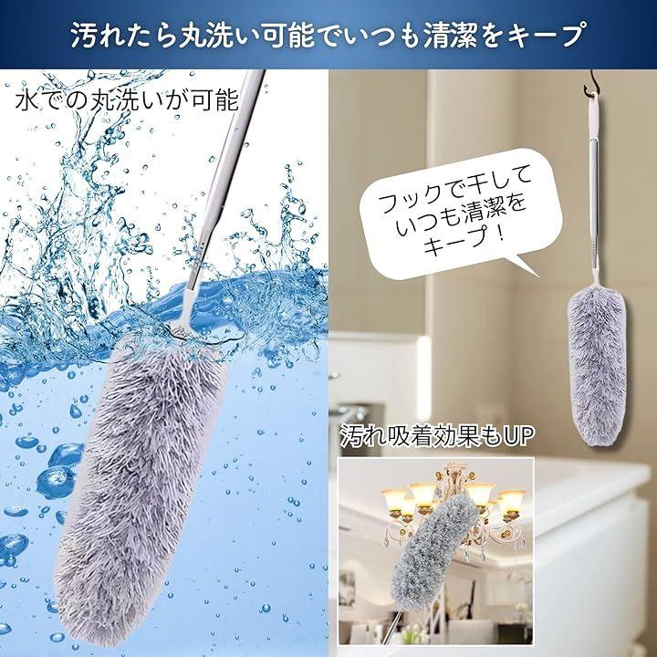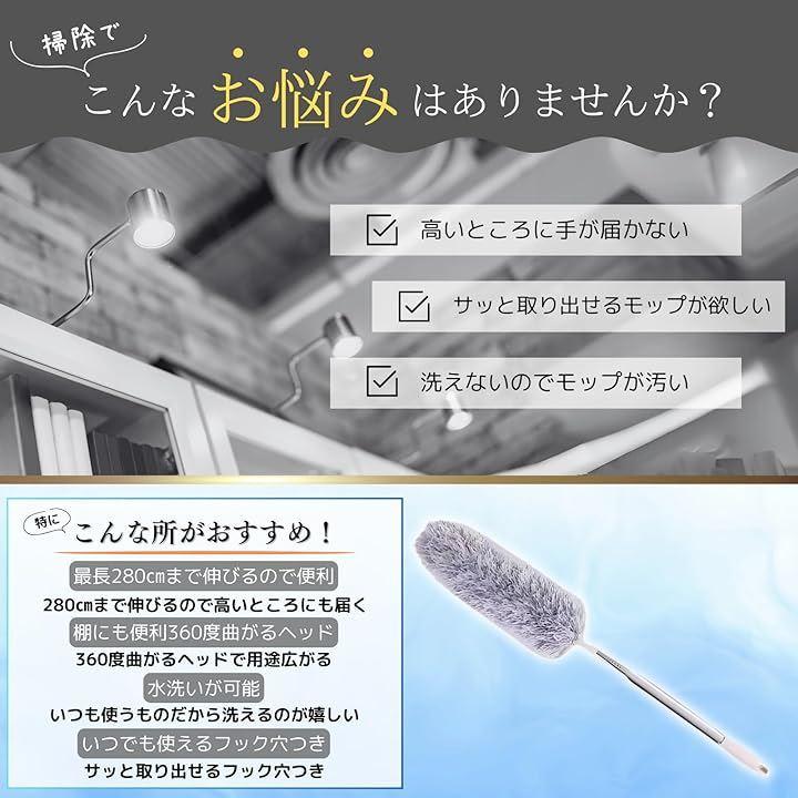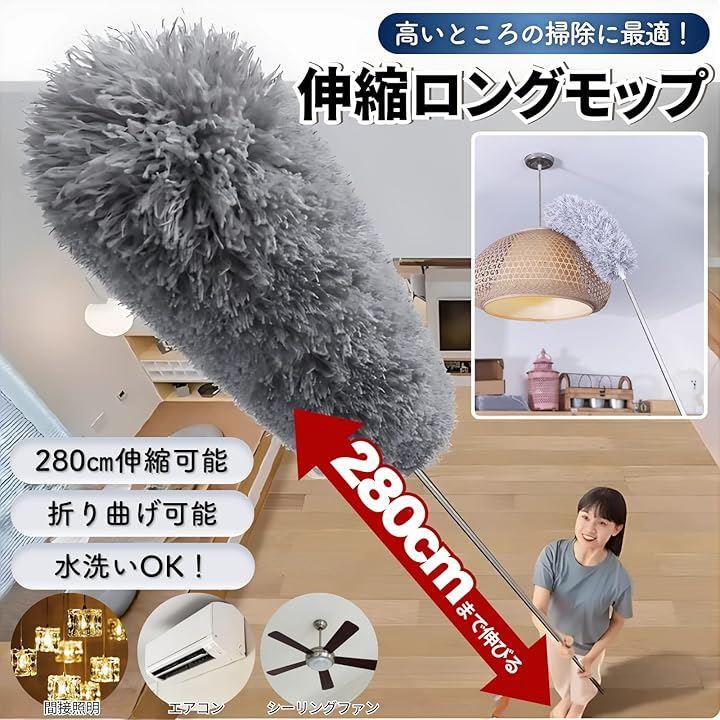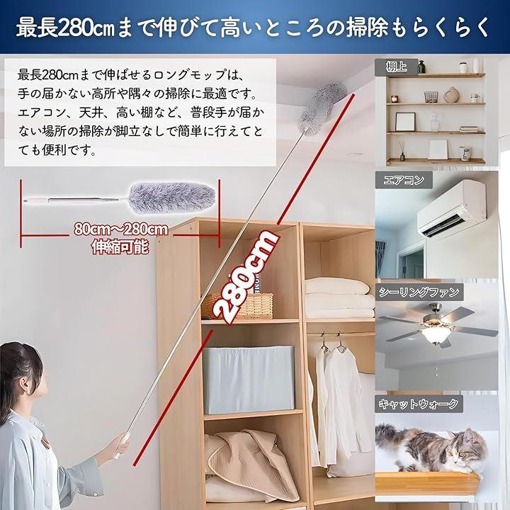 最長280cm/ 伸縮式 ハンディモップ 埃取り 高い所の掃除に。 洗える・伸びる・マイクロファイバー・よく取れる・大掃除・便利グッズ・プロ級アイテム