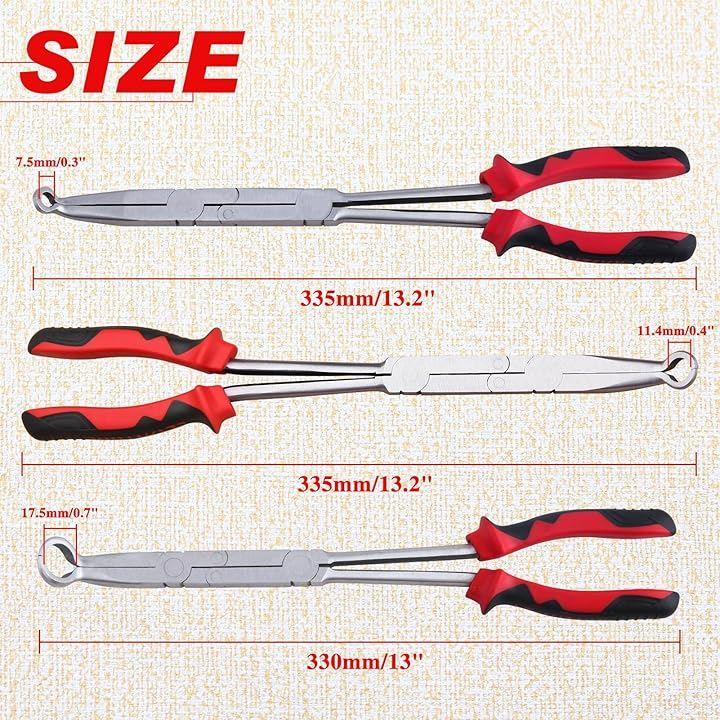 あなたが得るもの:1 個の小さいリング鼻(OD: 7.5mm/0.3)が付いている 13 ホース グリップ プライヤー、1 個の中型リング鼻(OD: 11.4mm/0.4)が付いている 13 ホース グリップ プライヤー、1 個の大きいリング鼻(OD: 17.5mm/0.7)が付いている 13 ホース グリップ プライヤー。