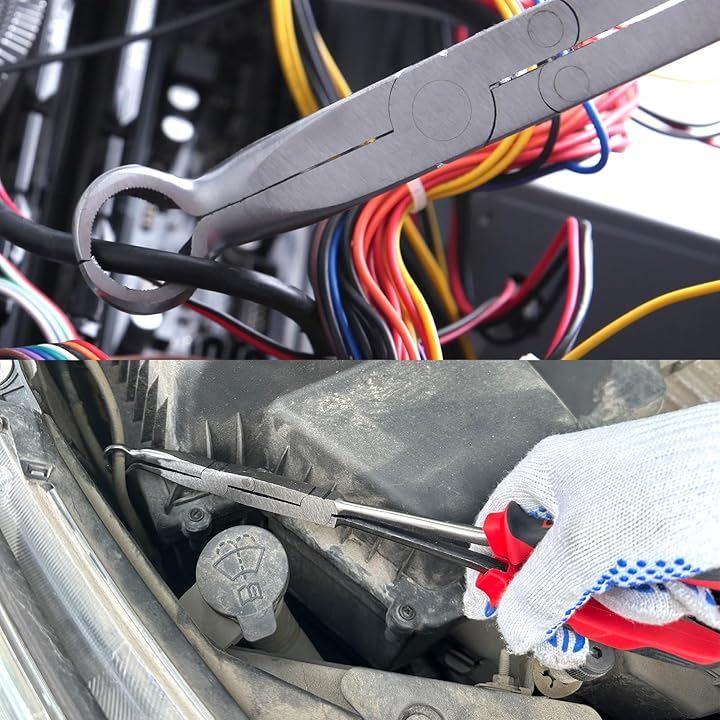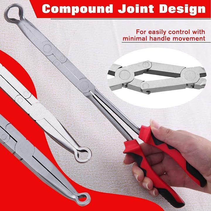 狭い場所でも使用可能: このロングリーチ・ホース・グリッパー・プライヤーは、複合アクション・ジョイントと延長されたノーズが特徴で、深く狭いスペースでも対象物をつかみ、引き、ねじることができます。
