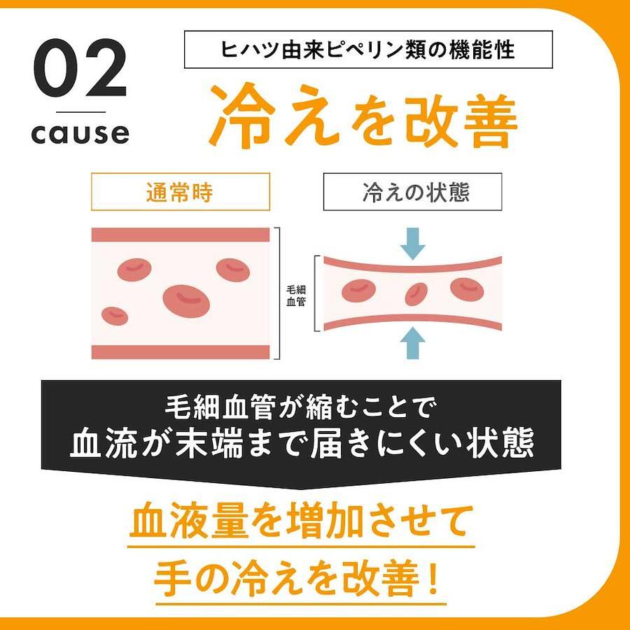 ■サイズ:??16x10x1cm;20g ? 【機能性表示食品】ヒハツ 由来 ピぺリン類 1粒に120μg 配合、60日分/1粒250mg ? 機能性表示食品 とは、事業者の責任で科学的根拠を基にした機能性の表示を、消費者庁に届出した食品です。 ? 夕方の脚(足)の むくみ を軽減する機能があることが報告されています。 ? 冷え により低下した血流(末梢血流)を正常に整え、冷え による抹消(手)の皮膚表面温度の低下を軽減する機能があることが報告されています。 ? 【お召し上がり方】1日1粒を目安に水または、ぬるま湯で、噛まずにお召し上がりください。 ■重要なお知らせ