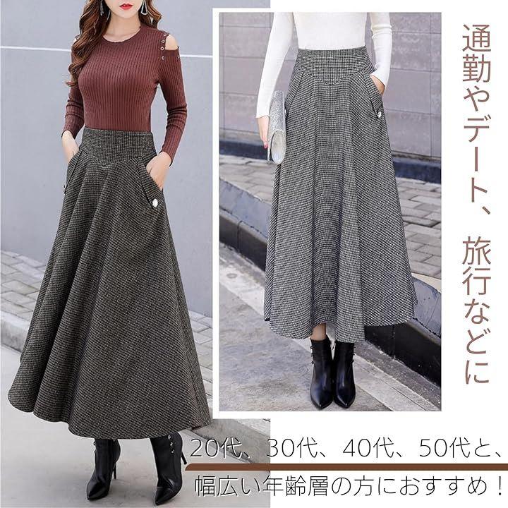 「ポイント」ロング丈のAラインスカートが脚を美しく見せ、ヒップや太ももを自然にカバー。