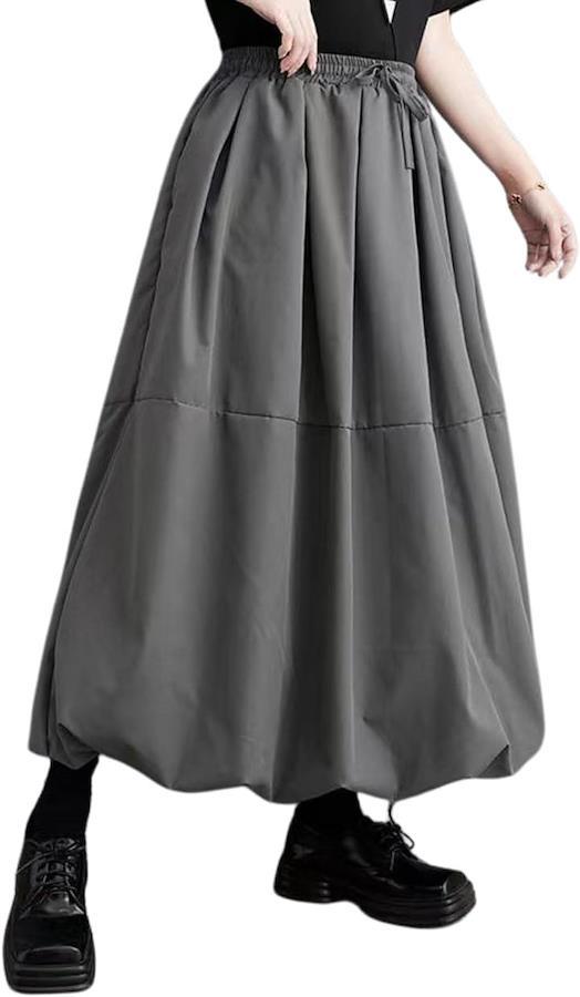 Long skirt with elastic waist, balloon cocoon, casual, mid-calf length, for women