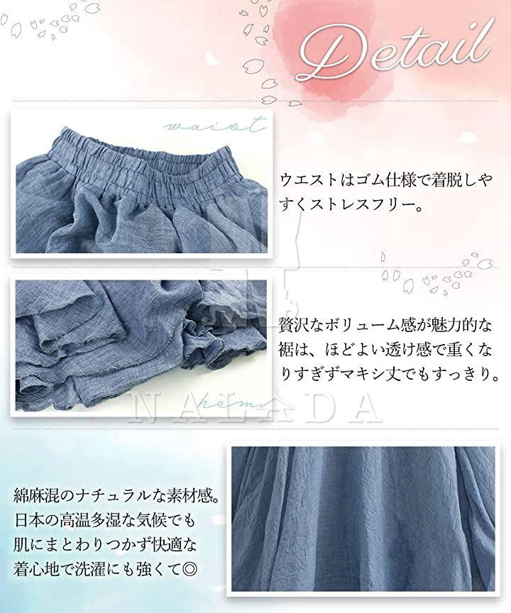 贅沢なボリューム感が魅力的な裾は、ほどよい透け感で重くなりすぎずマキシ丈でもすっきり。