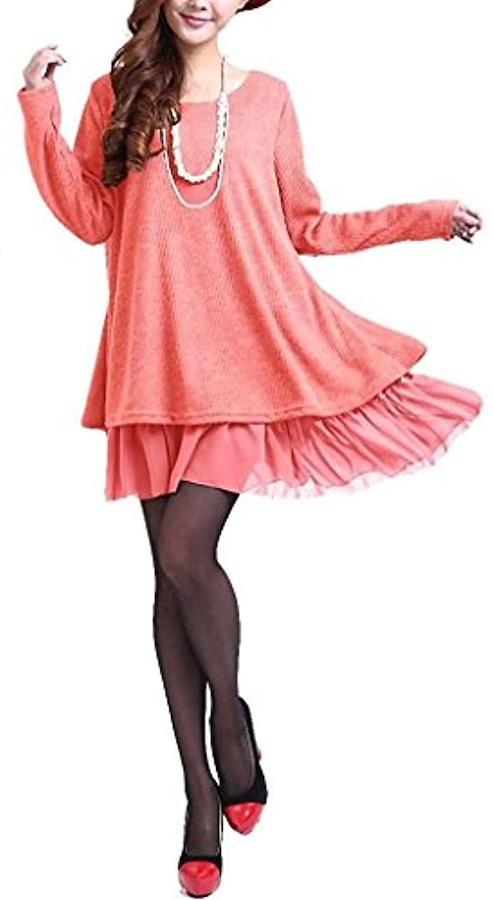 Long Sleeve Above Knee Frill Ribbon One Piece Layered Women's