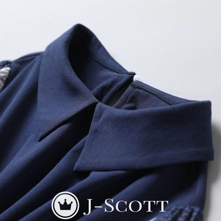 襟付きの首元がきちんと感をプラスし全体を引き締めるアクセントに。