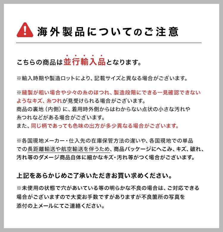 ■ご注意※表記サイズより、多少の誤差があることがございます。※商品の画像はできる限り実物に近づけるよう配慮しておりますが、お使いのモニターやご覧になる環境によりましてはカラーの見え方に差が出る場合がございます。ご了承くださいませ。※メール便発送の場合タグを切ってパッケージから出して発送する場合があります。ご了承くださいませ。