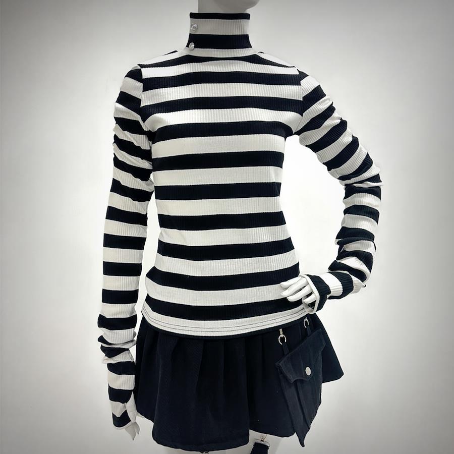 ”着回し抜群のタートルリブカットソー”・タートルがネックまわりでしっかりとカバー・襟元にシルバー釦デザイン・ロングスリーブは着用するとクシュクシュっと可愛く着こなせます。・柔らかい素材のカットソー---#ギャル ギャルファッション セクシー 可愛い フェミニン 双子コーデ ショート あざとい カジュアル Y2K シンプル 韓国ギャル ギャルコーデ サブジラギャル ゴスパンク ゴシック グランジ パンク 悪羅セクシー---《透け感》なし 《生地の厚さ》普通 《裏地》なし 《伸縮性》あり《生産国》中国