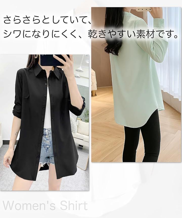 「 [ブブ オーハナ] シャツ ブラウス 長袖 無地 ロールアップ スリーブ ワイシャツ 長め ポケットレス レディース 」