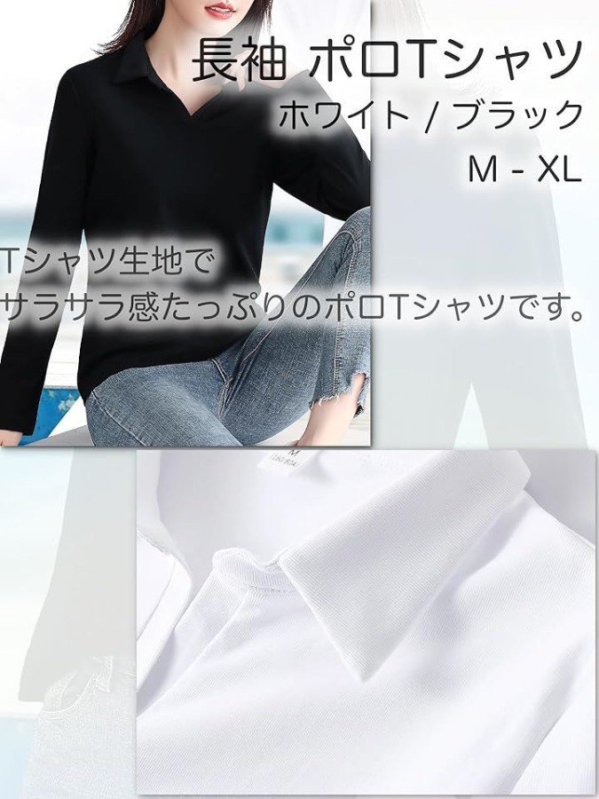 「爽やか & 清潔感」ポロシャツスタイルの襟つき長袖Tシャツ。