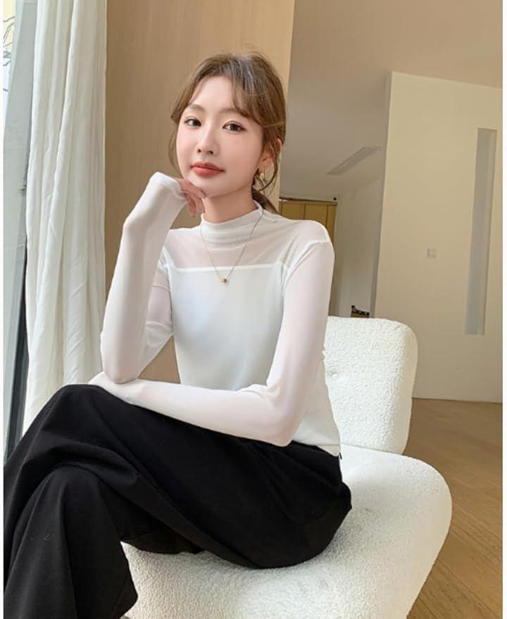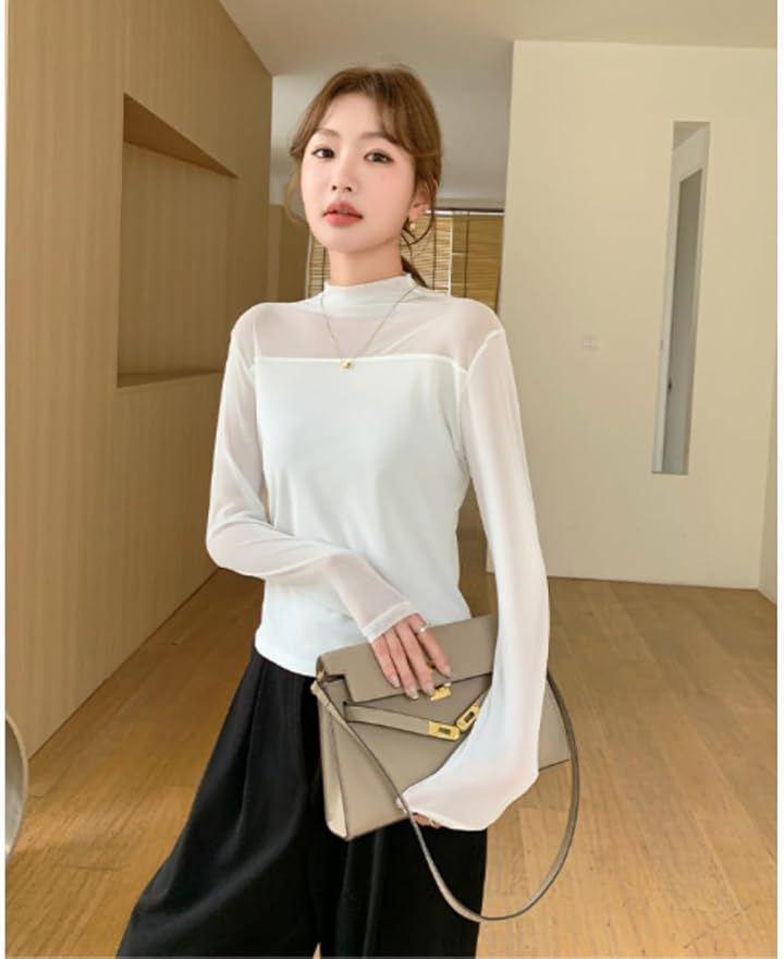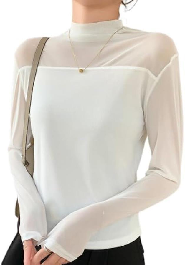 上品な透け感と着心地の良さを兼ね備えた、シアー切り替え長袖カットソー。