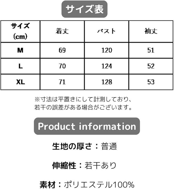 「サイズ」 「M」 着丈69cm/バスト120cm/袖丈51cm、「L」 着丈70cm/バスト124cm/袖丈52cm、「XL」 着丈71cm/バスト128cm/袖丈53cm *寸法は平置きにして計測しており、若干の誤差がある場合がございます。
