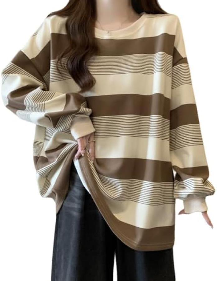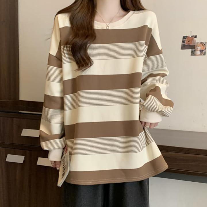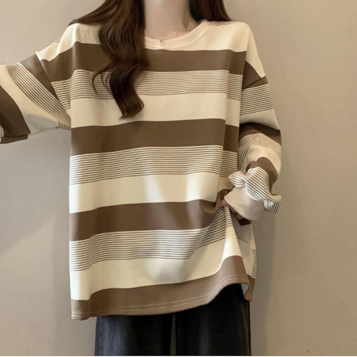 トレンドのゆったりシルエットが魅力の長袖ボーダーカットソーです。