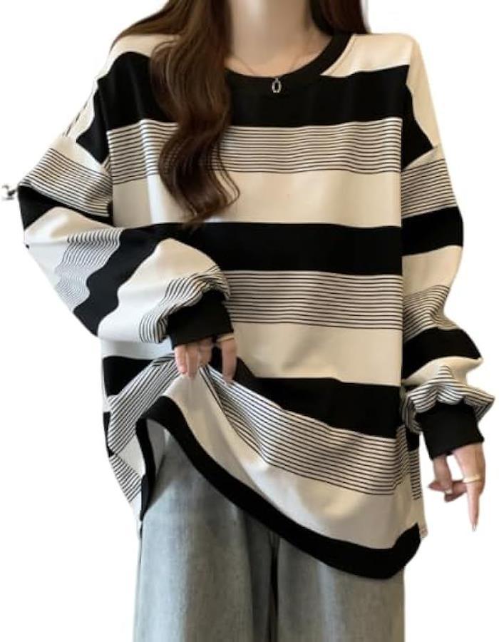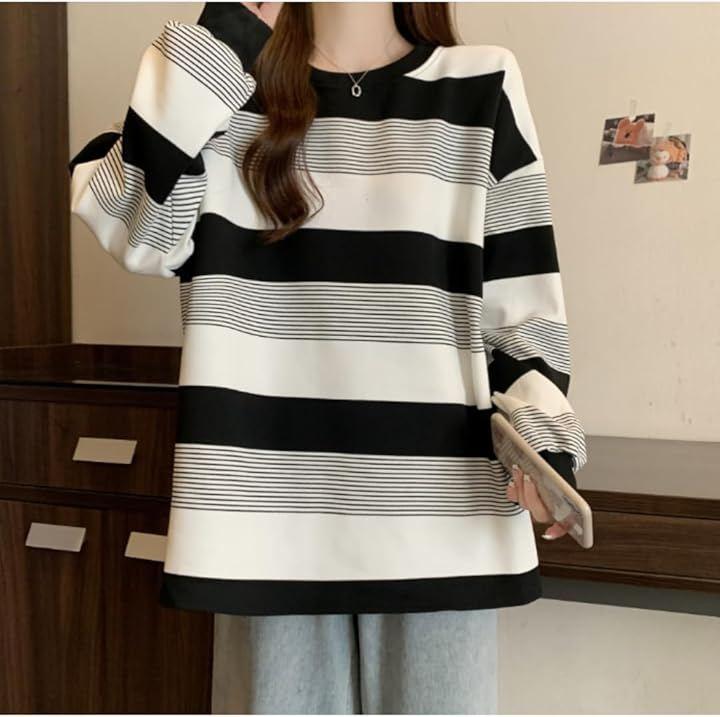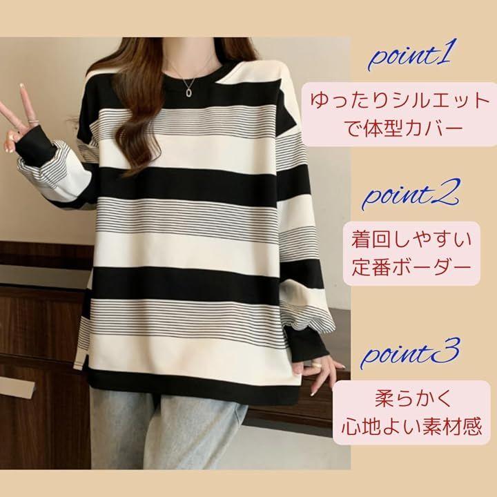 トレンドのゆったりシルエットが魅力の長袖ボーダーカットソーです。