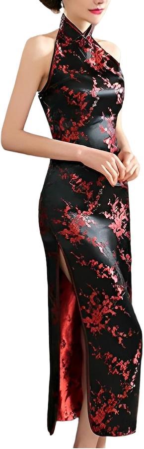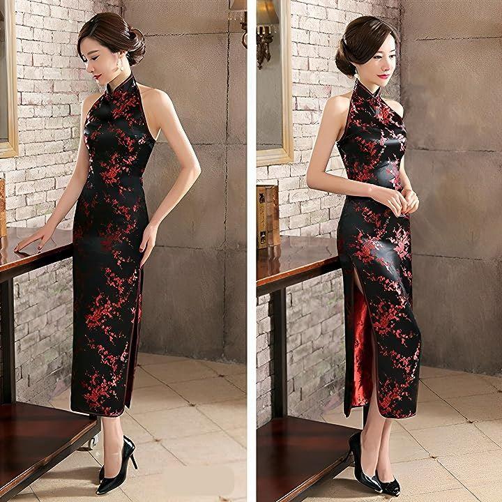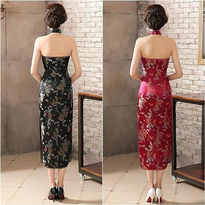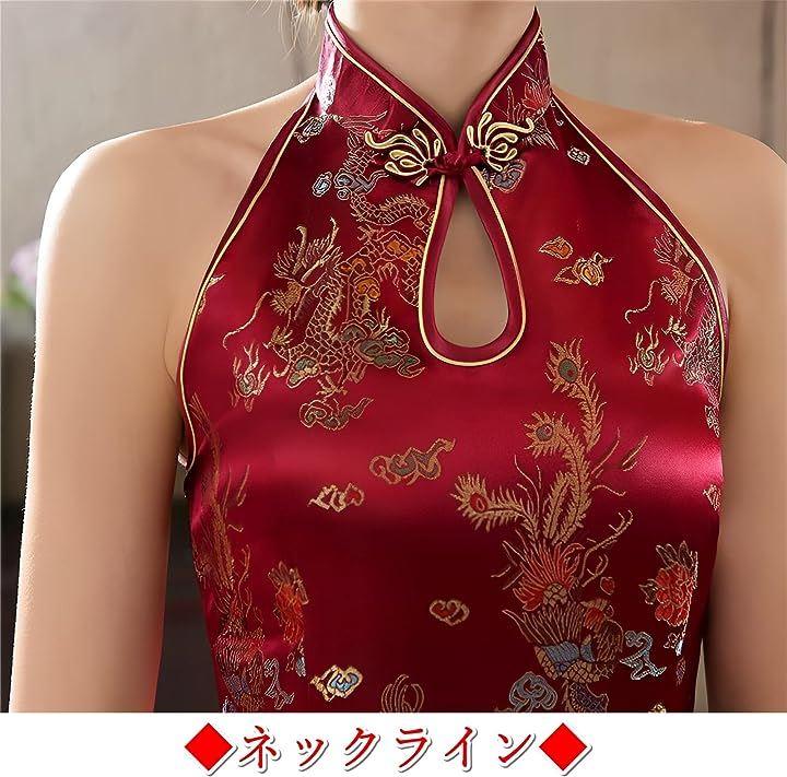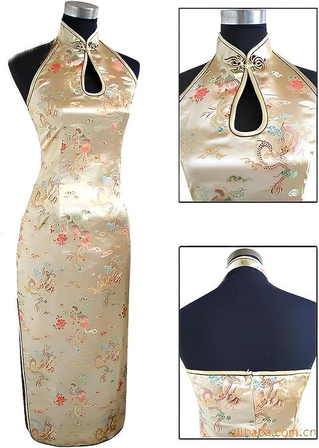 Eizaチャイナドレスは、ノースリーブのホルターネックドレスのデザインがポイントです。