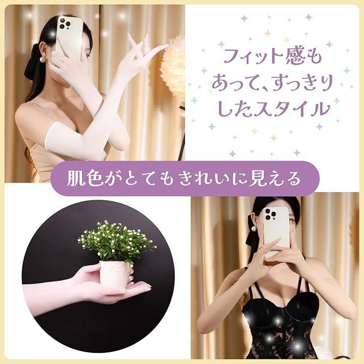 薄いストッキングタイプの、ロング手袋。肌色がとてもきれいに見える手袋は、理想の肌の質感をかなえてくれます。