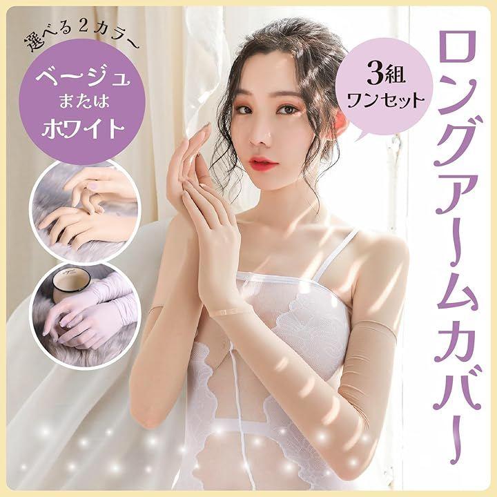 指先までカバー。ストッキングタイプの、ロングアームカバー、ストッキング手袋です。