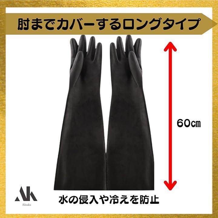 長さ60cmのロング設計で肘までしっかり覆うため、水の侵入や冷えを防ぎ、つらい水仕事にも最適です。