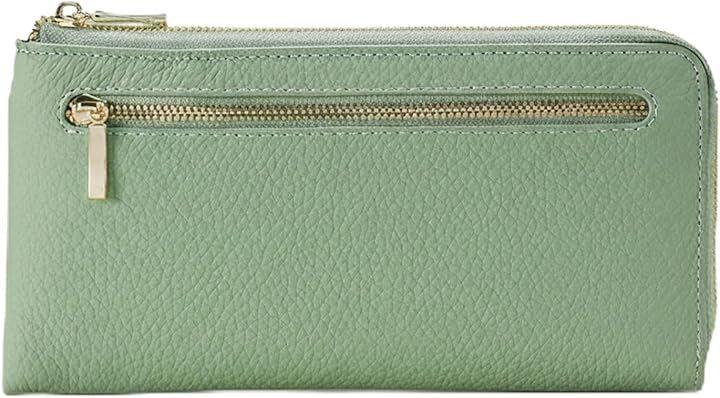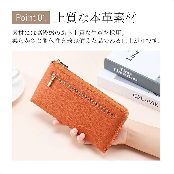 Long wallet, slim, L-shaped zipper, genuine cowhide leather, RFID blocking, anti-skimming, multiple pockets, women's.